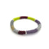 Un feu d'artifice de couleurs et de contrastes : « Elektra » électrise le poignet. Des perles violettes, citron vert, mûre, vert fluo, gris perle, gris pierre et argent brillant se fondent dans un spectre de couleurs vibrantes, inspiré par les jeux de lumière nocturne.