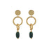 Ces boucles d'oreilles équilibrées et symétriques combinent de manière ludique des cercles avec une pierre semi-précieuse pendante de taille ovale. Choisissez entre du laiton plaqué or ou plaqué argent, forgé à la main dans notre atelier d'orfèvrerie au Népal. Fabriquées dans des conditions de travail équitables, ces boucles d'oreilles représentent la beauté et l'élégance.