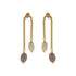 Les boucles d'oreilles Kate aux formes généreuses impressionnent par leur arc incurvé et leur design légèrement asymétrique. Deux pierres semi-précieuses de tailles ovales différentes créent un jeu attrayant sur l'oreille. Disponibles en laiton plaqué or, ils offrent une variété de combinaisons. D'une longueur de 50x10mm, ces boucles d'oreilles sont des compagnons élégants qui ajoutent une touche spéciale à n'importe quel look.