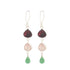 Boucles d'oreilles élégantes et longues avec trois pierres semi-précieuses : deux en forme de cœur et une en forme de larme facettée. Forgé à la main en laiton plaqué or ou en argent sterling dans une combinaison de couleurs impressionnante.